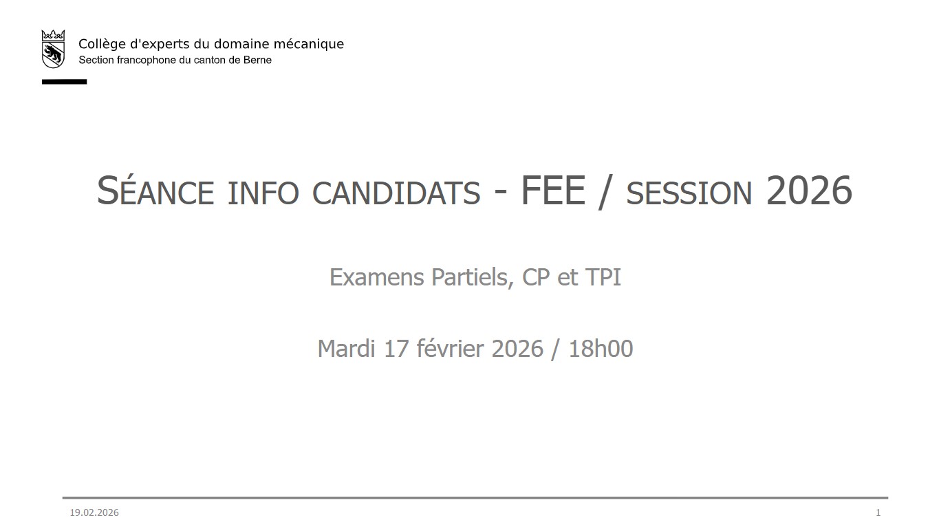 Le Collège d'experts mécanique souhaite adresser tous ses encouragements aux candidat(e)s qui s'apprêtent à débuter leur session d'examens.